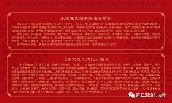 栉风沐雨砥砺行,春华秋实满庭芳。过去的一年,我们喜迎了党的二十大胜利召开。我区陈氏宗亲在奋进新时代的征程中,抗击疫情,勇毅前行,充分展现了陈氏宗亲们不畏艰辛、脚踏实地、埋头若干的精神风貌。永定陈氏宗亲联谊会在班子成员的务实带领下,在各片区村庄委员.顾问、村委会.理事会及宗亲贤达的热心支持下,喜事连连,成绩斐然。历经三年的艰苦努力,颍川陈氏永定总谱-《永定陈氏文化》终于成功问世,并于“五一节”在永定培丰召开隆重的开谱庆典活动;联谊会以谱为媒,以谱会友,广泛开展省内外宗亲联谊活动,向全国各地图书馆、族谱馆及宗亲组织机构赠送了100多部族谱;热忱支持、竭诚帮助永定陈氏望族-虞溪陈氏编修族谱;精心编辑印制《永定陈氏文化台历》祠堂篇与名楼名胜篇各300本,并于春节前夕给全区陈氏宗亲拜年并赠送派发给各片区村庄的委员、顾问、乡贤;精心组织筹备2023年上半年联谊会的换届工作。等等。这些举措,不仅大力弘扬了中华民族优秀传统文化之姓氏谱牒文化,也为永定陈氏家族宗亲事业创新局,谱新篇,作贡献。